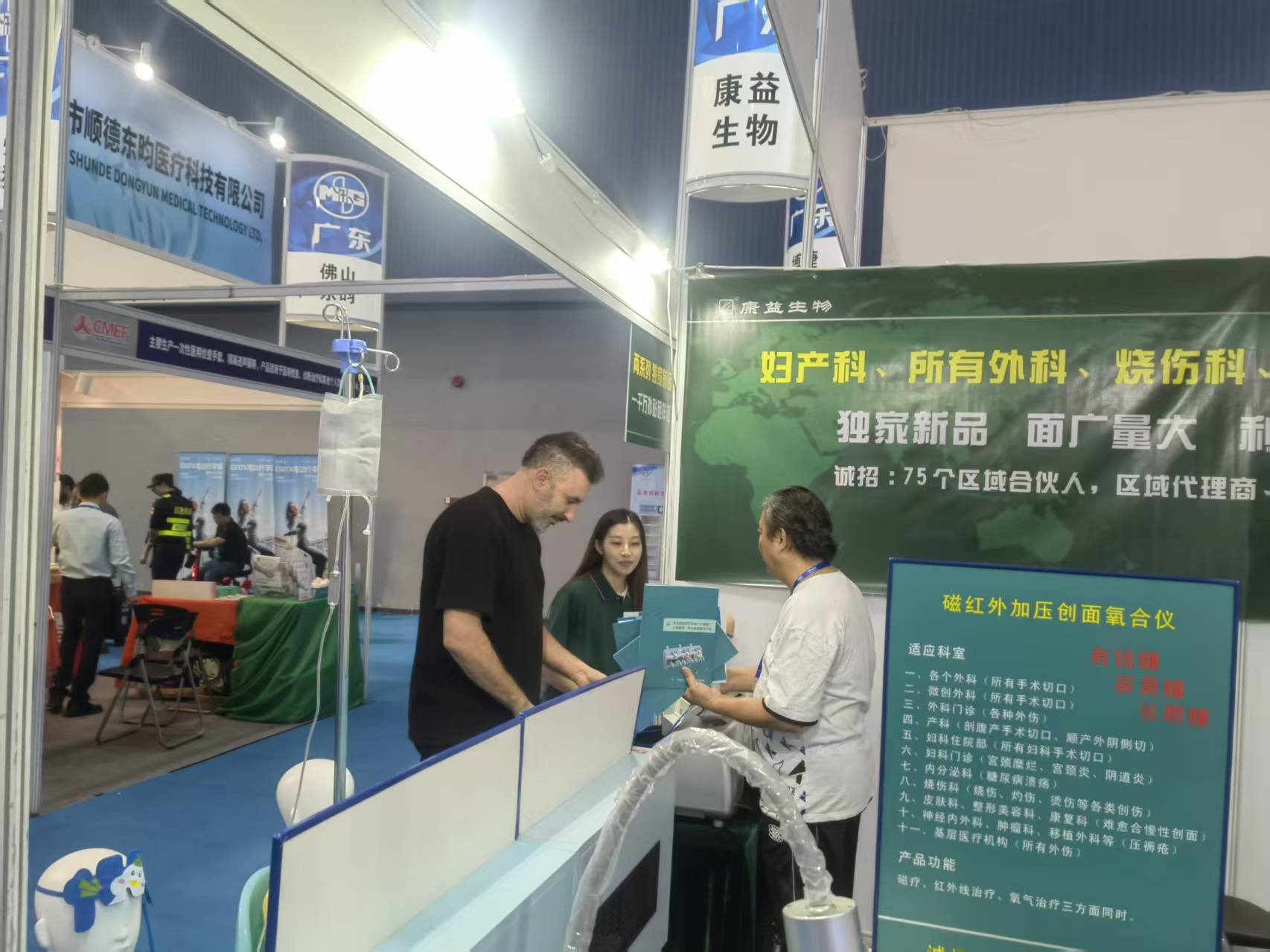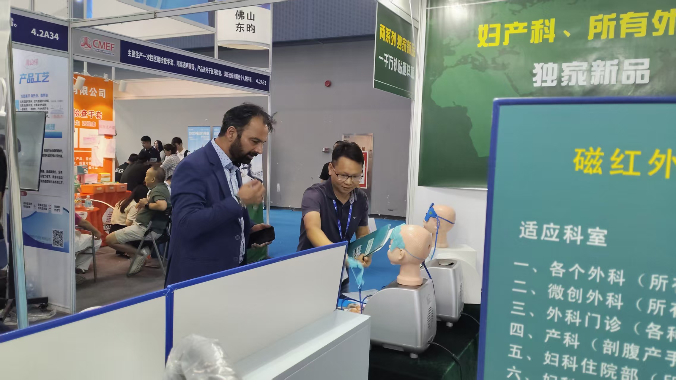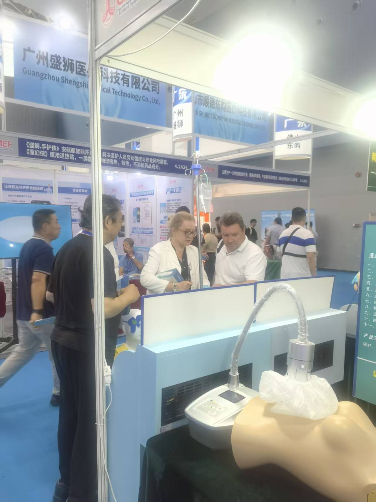 公司独家系列产品“数码局部恒温仪”和“冷疗中心”,得到众多国内外专业人士的高度认可!下图为部分国外专业人士现场体验产品,并进行合作意向交流中: