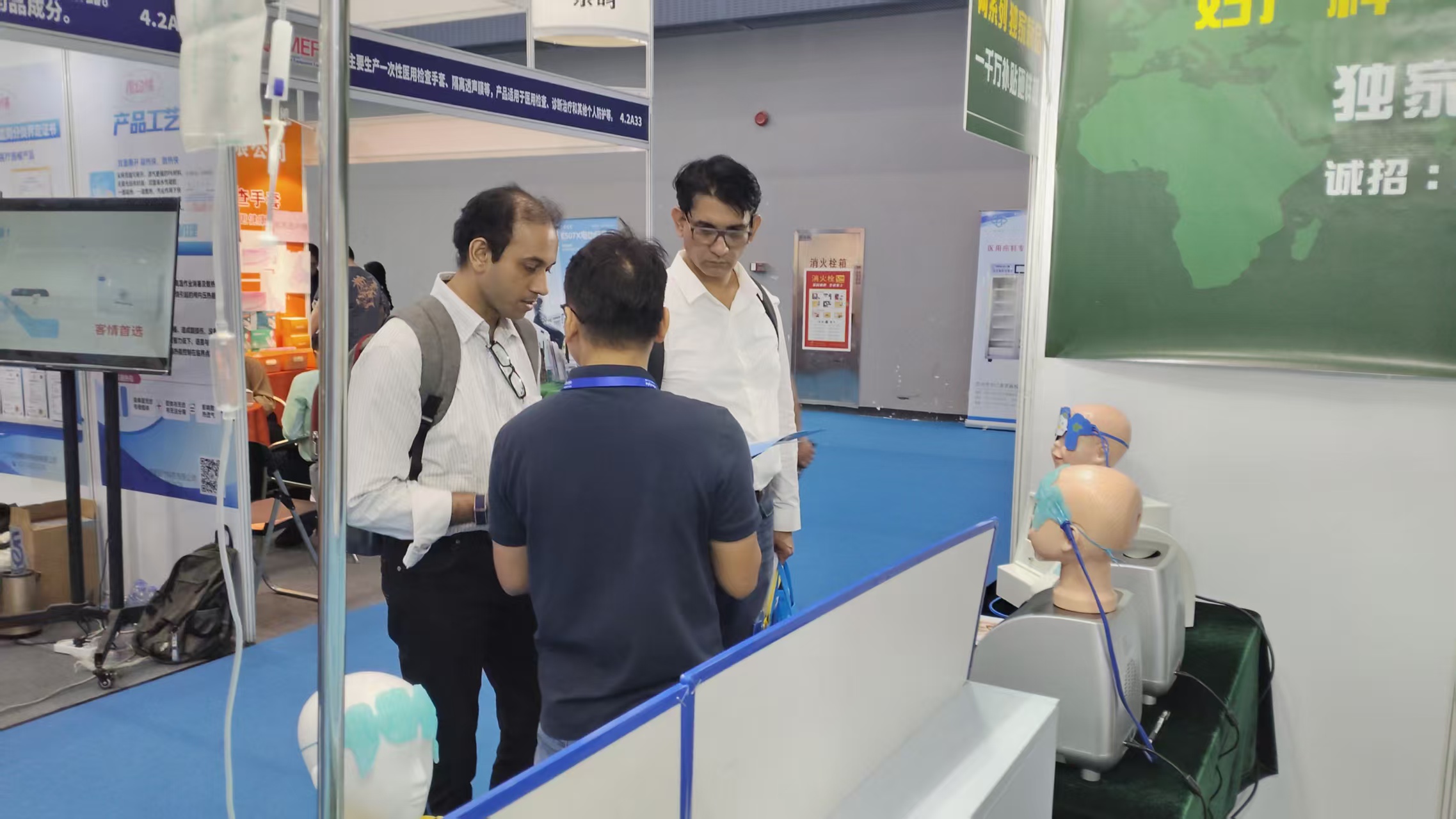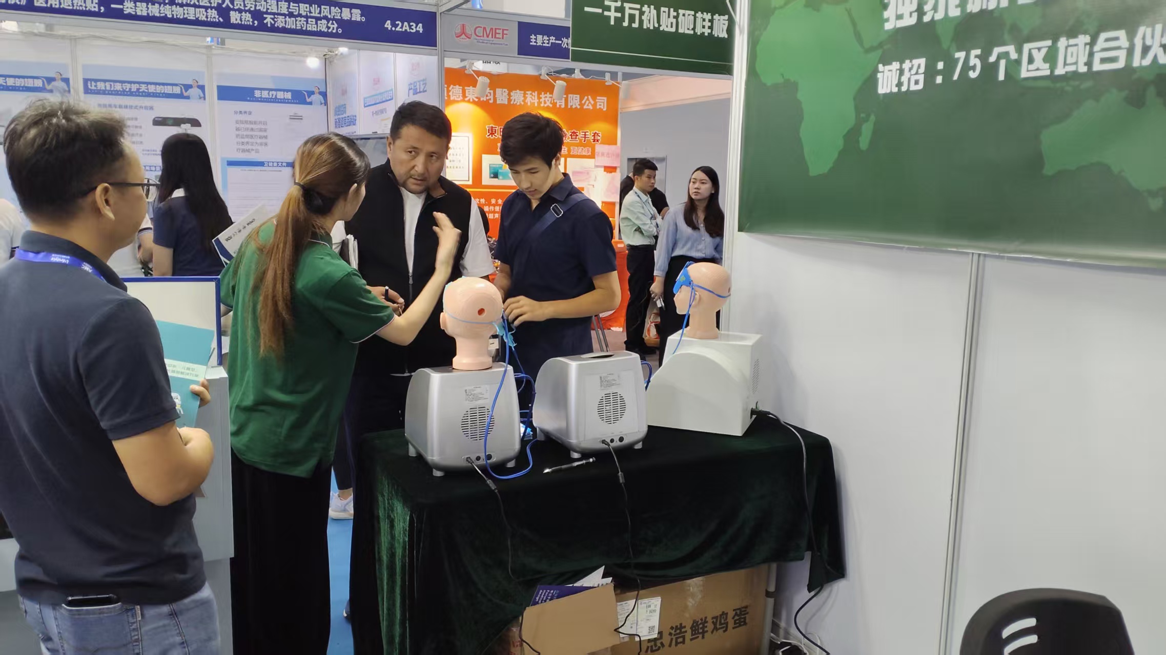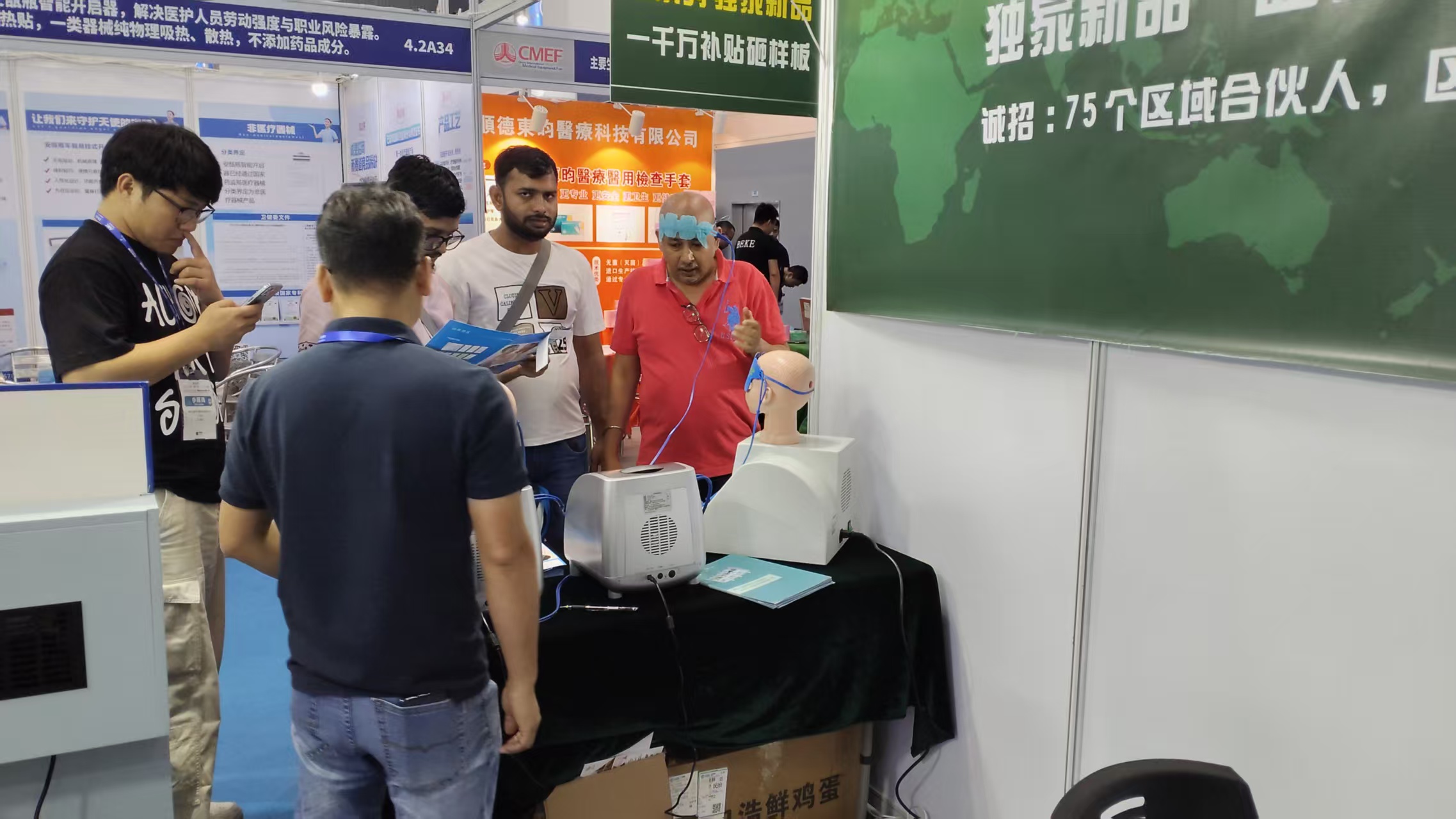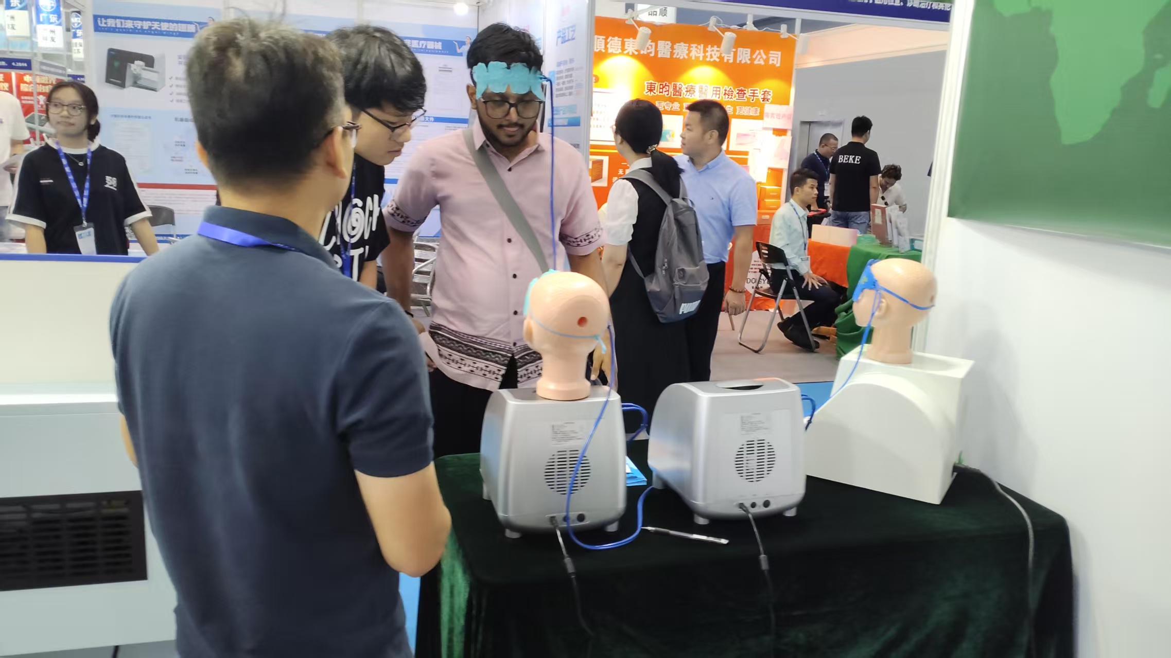 公司独家系列产品“数码局部恒温仪”和“冷疗中心”,得到众多国内外专业人士的高度认可!下图为部分国外专业人士现场体验产品,并进行合作意向交流中: