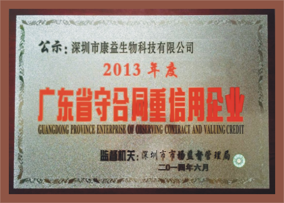 “深圳市市场监督管理局”公示了本公司成为“广东省守合同重信用企业”,荣获此称号的企业可获得包括工商局、税务局、发改委、经贸委、科技厅以及财政、社保、银行、海关等17个政府部门共50余项优惠政策的扶持。